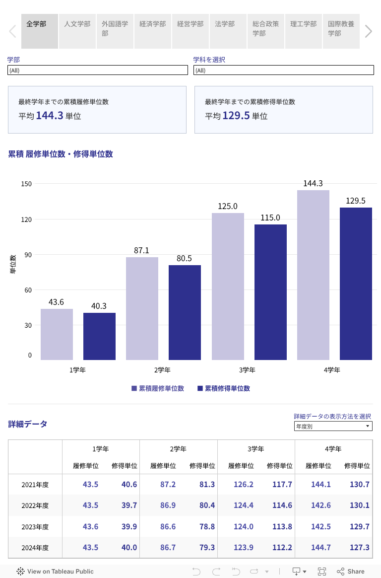 平均履修単位数・修得単位数