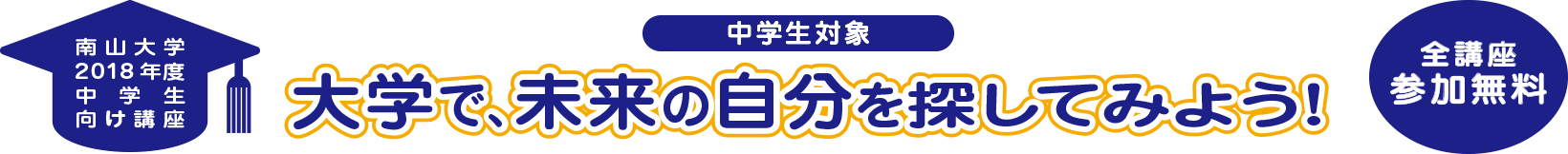 南山大学小・中学生向け講座2018年度 南山大学中学生向け講座「大学で、未来の自分を探してみよう!」