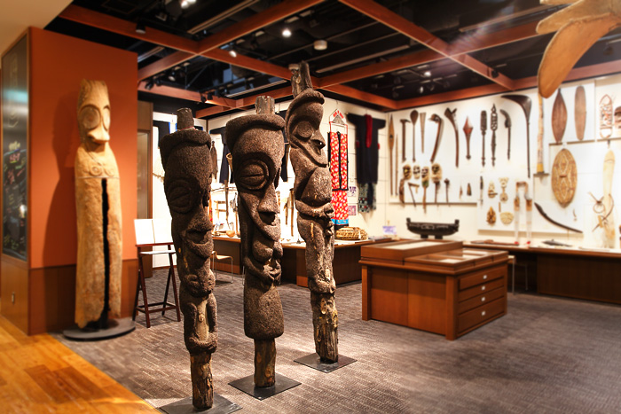 南山大学人類学博物館は、ガラスケースを使用しない露出展示を多く取り入れています。