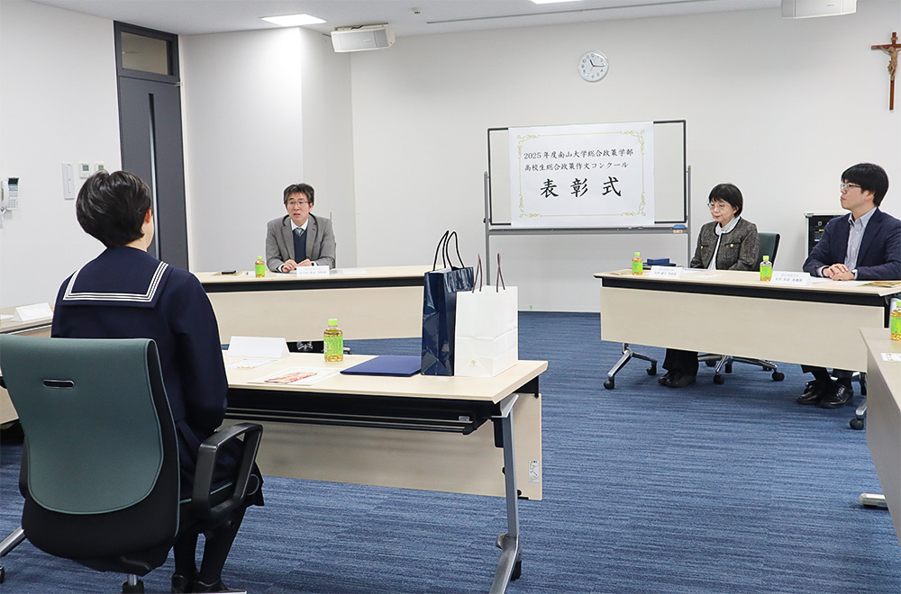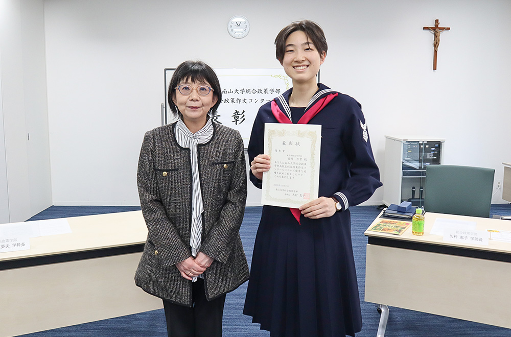 南山大学総合政策学部では、2008年度から「現代社会の問題について」をテーマに全国の高校生を対象として作文コンクールを実施しており、今年度も多くの応募作品が寄せられました。厳正なる審査の結果、以下の1篇が受賞作品に選出され、11月2日(日)に本学で表彰式を行いました。