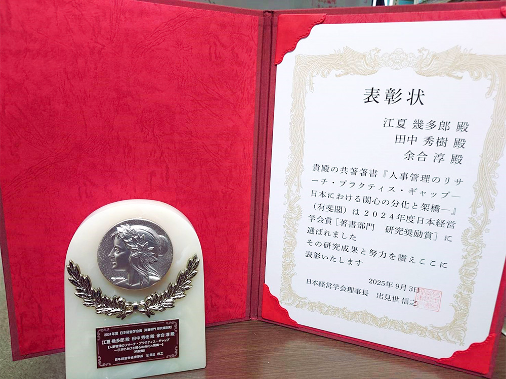本学経営学部の余合淳准教授の共著書『人事管理のリサーチ・プラクティス・ギャップ ― 日本における関心の分化と架橋』(有斐閣)が、2024年度日本経営学会賞(著書部門)研究奨励賞を受賞しました。