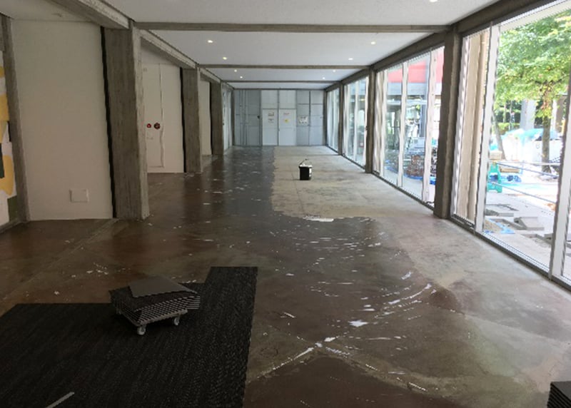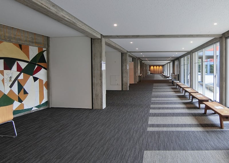 改修前には通路の音環境向上のために、タイルカーペットが増し張りされていました。