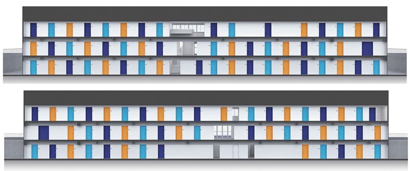 部室扉カラースキーム※この展開図は検討段階のもので実際の扉の色は位置とは異なります。