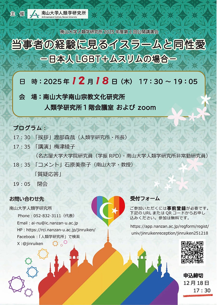 南山大学人類学研究所 第2回公開講演会「当事者の経験に見るイスラームと同性愛―日本人LGBT+ムスリムの場合」