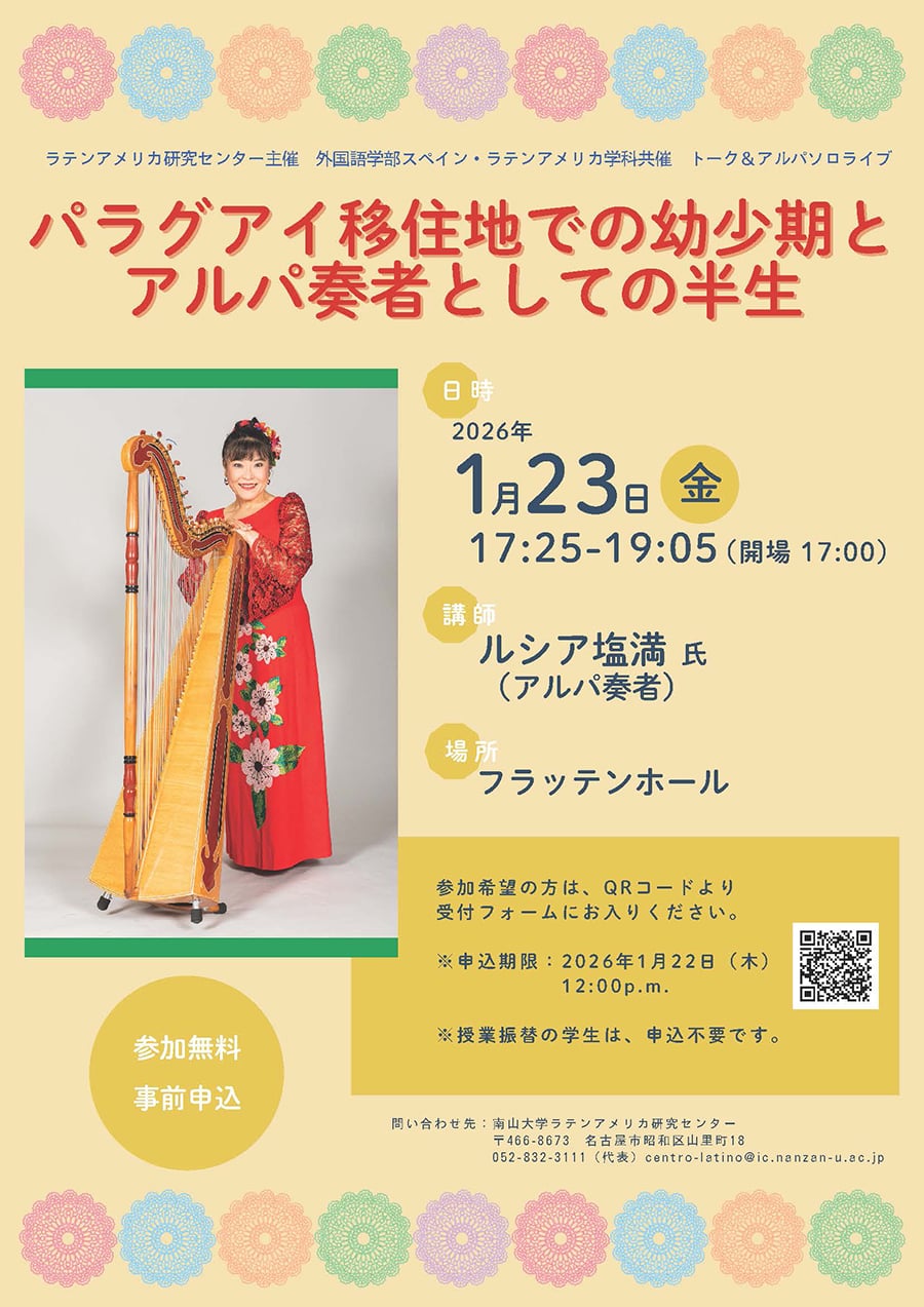 ラテンアメリカ研究センター主催トーク&アルパソロライブ「パラグアイ移住地での幼少期とアルパ奏者としての半生」