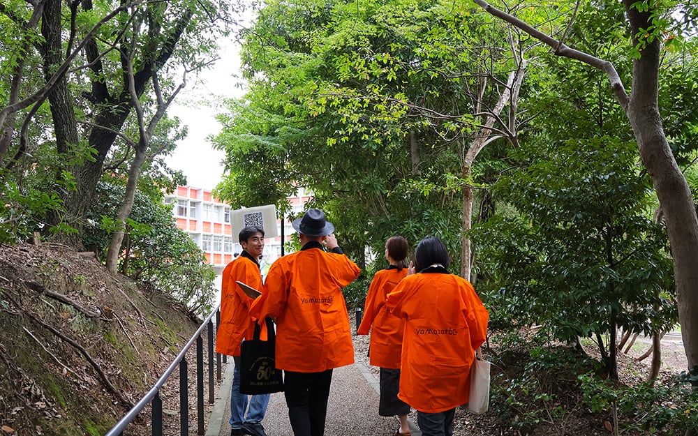 本部棟から出発して、キャンパスの最北端に位置するコパン(学生会館)の「咖哩日和」に到着しました。2025年4月からはうどんの販売(うどん日和)も始まり、メニュー表もにぎやかです。