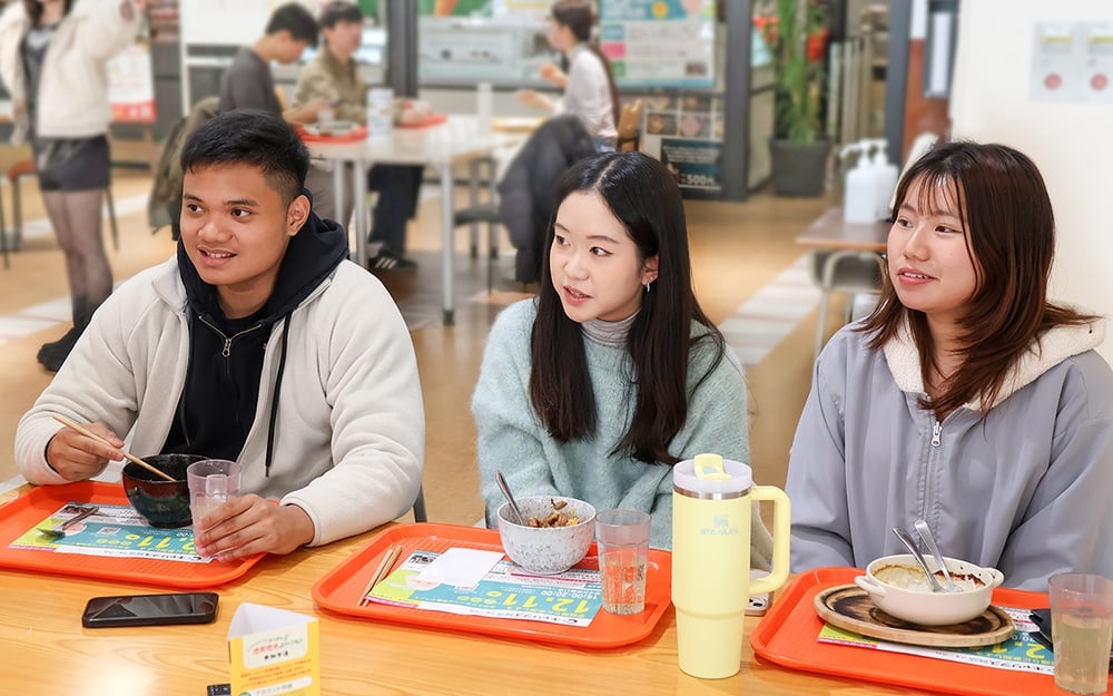 教室棟からアクセスが良いこともあり、お昼の時間帯は空席を探すのが難しいほど満席状態のSWEETS MAGIC Lab.。学生によるメニュー開発や、産学連携、スイーツメニューの充実など、今までにない新しい形の学食。毎月5日、15日、25日の「倍盛唐揚」デーや、毎月29日の「肉の日ドーンとステーキDAY」なども見逃せません。土曜日も営業しており、地域の皆さんにも足を運んでもらいやすいと思いますので、ぜひ、多くの方にお越しいただければと思います。