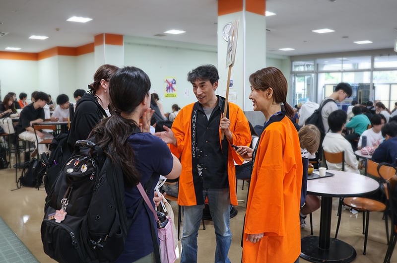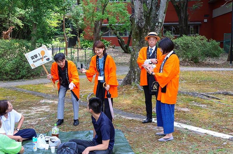 突撃取材メンバー:左から 李 菱葉(広報・募金課)、奥田 太郎(社会倫理研究所)、河合 陽子(広報・募金課)、伊藤 諒(広報・募金課)