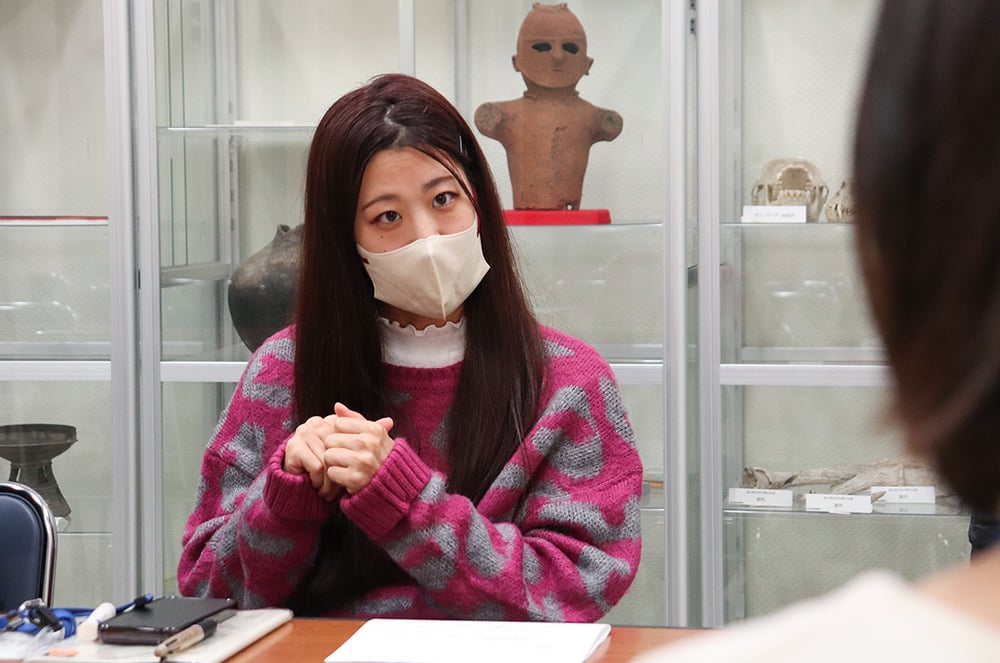 私は小さいころから漠然と博物館が好きだったんです。ずっと博物館に関わる仕事をしたいと思っていて、進路を決める時に学芸員の資格が必要だと知り、南山大学人文学部に入学しました。卒業のタイミングで、ここの博物館の学芸員の枠が空くと教えてもらい、4年間学んできた大学の博物館に就職できるなんて良い機会はまたとないと思い、採用試験を受けました。