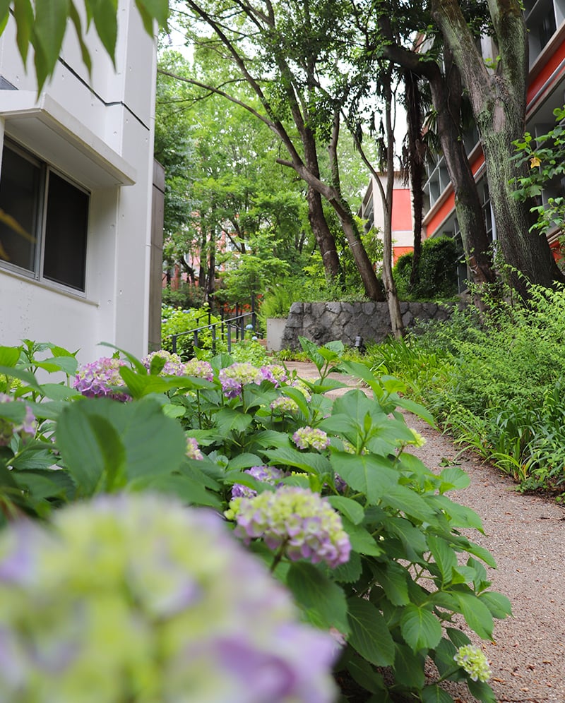 奥田副学長からの受け売りですが、レーモンド建築は深いところまで自然光がちゃんと入るよう設計されているそうです。キャンパス全体が緑に包まれていますよね。特にF棟の辺りは、私の学生時代から「森の中」の印象でした。とっても気持ちがいいですよね。森田先生にとってのBeautiful Campusは?