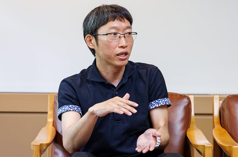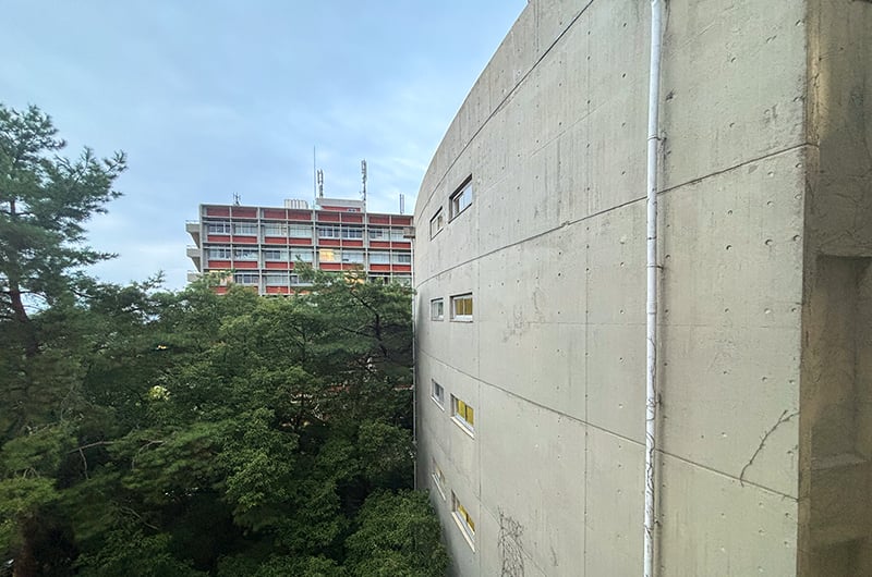 あの通路は、研究と教育をつなぐ架け橋だと思っています。地形の高低差を生かした設計で、まるで空中通路のようになっていて、そこを通るのが好きなんですよね。また私が授業で行くのはK棟、M棟、F棟が多いので、第1研究室棟からは雨でも傘なしで研究室と往来できて、研究と教育を繋げる設計だなと実感します。さらにもう1つ、好きなところがありまして…