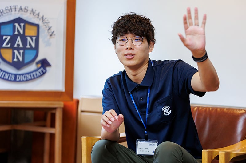 大学職員をしている兄から「大学が好きだったら絶対楽しいよ」という話を聞いて、魅力を感じていました。私は京都の大学に通っていたんですけど、就職先としては、地元に帰っていきたいなという思いがありました。東海圏の大学といえば、やっぱり南山だろうと。南山出身の友人がいて、キャリア支援課のサポートの話や、サークル活動に邁進している話を聞いてたので、親近感もありました。