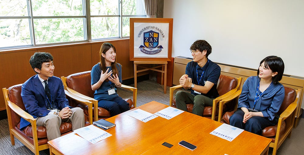 南山キャリア支援課の基本方針は「大学生活を通じて自立した社会人に成長させること」です。すべてお膳立てをして「就職させてあげる」というよりは、学生自身が気づき行動を起こせるようなヒントを示すようにしています。就活も「成長の機会」として、社会へ羽ばたいていって欲しいと願います。キャリア支援課はQ棟の2階にあるのですが、初めて来る学生などは緊張した面持ちで入ってくるので、話をした後にはまた来たいな、と思ってもらえるよう笑顔を心がけています。