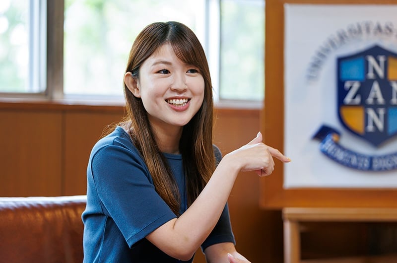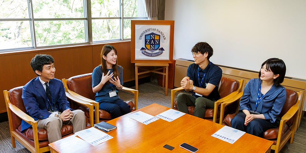 Nanzan Mindについては、とても抽象的な表現になってしまうのですが、教職員も学生も、皆さん優しいなって思います。教育モットーである「人間の尊厳のために」がここまで根付いている大学はあまりないんじゃないかと思います。前職は民間企業でしたので、いわゆる経営理念はどの企業も掲げていますけど、現場まで浸透しているイメージがなかったので、そこは正直驚きました。「人間の尊厳のために」が皆の心にフィットしているし、それを体現するような優しい人たちばかりなので、そういうところに私はNanzan Mindを感じます。私が入職したのは、ロシアのウクライナ侵攻が始まり国際情勢への懸念が高まっていた2022年だったこともあり、創設から変わらず「人間の尊厳」を掲げている南山はすごいな、と思いました。