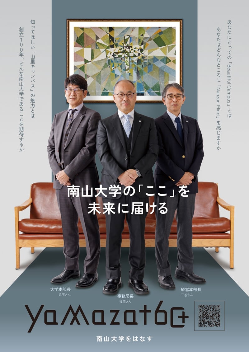 『YAMAZATO60+』職員座談会vol.3<前編>では、事務局長・経営本部長・大学本部長の学生時代から現在までの話を伺いました。ここからはメインテーマである、「Beautiful Campus」と「Nanzan Mind」について、そして未来に向けた話へと進めていきます。